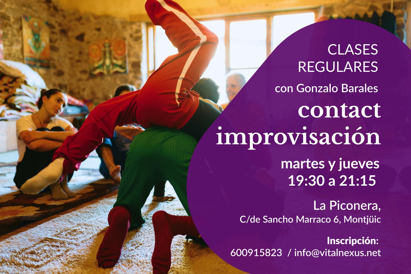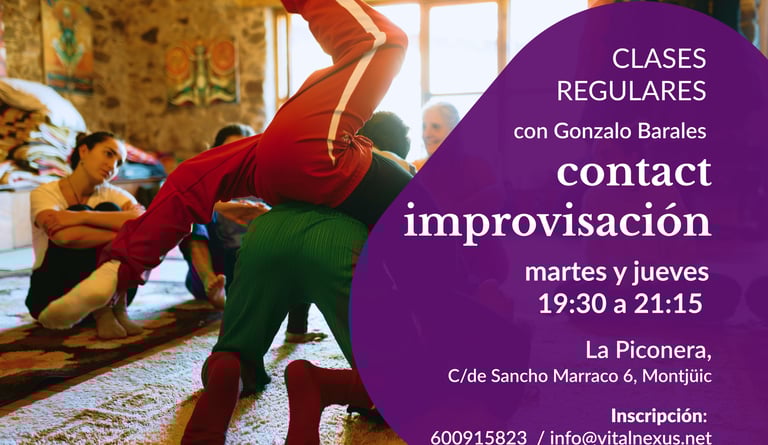 Prácticas de Contact Improvisación desde la conexión interna, el cuidado intuitivo y la cooperación creativa.