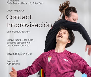 Prácticas de Contact Improvisación desde la exploración de movimiento, el cuidado intuitivo y la cooperación creativa.