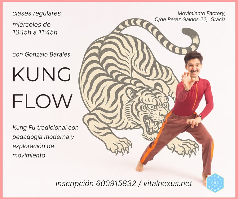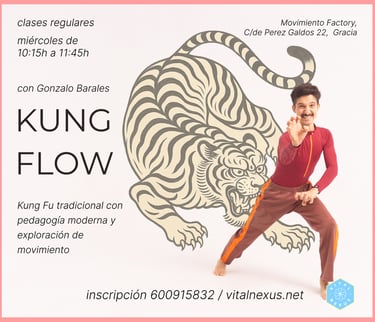 Kung Flow: Clases de Kung Fu Tradicional con entrenamiento integral, exploración de movimiento y progresiones adaptadas a cada participante.
