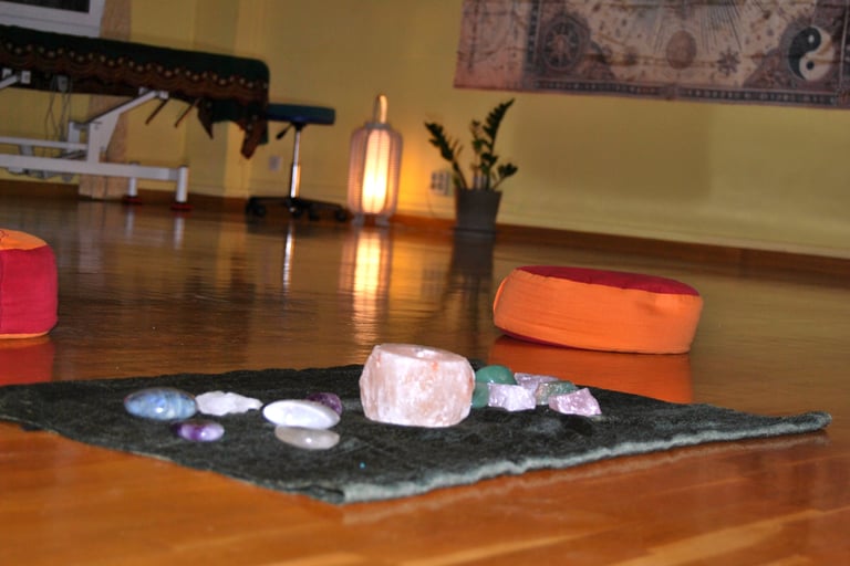 Entrenamiento de la escucha sutil, con movimiento consciente y cristales.