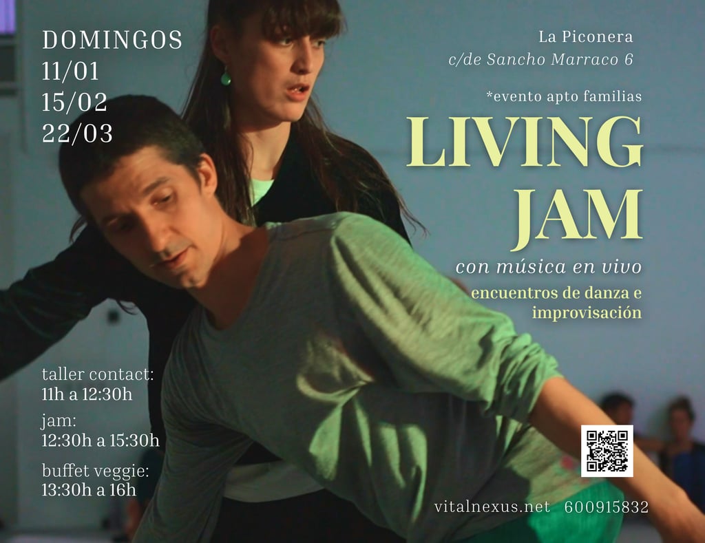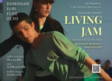 Las Living Jams son un espacio artístico de juego para romper el ritmo del día a día y dedicarnos a la exploración del movimiento, la creatividad y la libre expresión en comunidad.